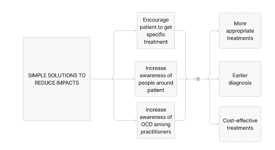 So how could we help to reduce further negative effects of OCD on socially and economically? One of the easiest ways to encourage people with OCD to take a specific treatment. Studies have shown that specific treatments, such as serotonin reuptake inhibitors and behavior therapy showed greater symptom improvement, and significantly reduced the total cost incurred by OCD patients.